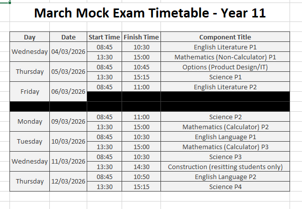 Controlled assessments and non-examination assessments will continue throughout the year; students should check with their subject teachers for the date of these.